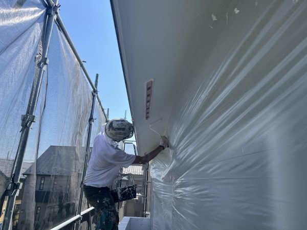 先日、新築の軒天塗装を施工させて頂きました^^;