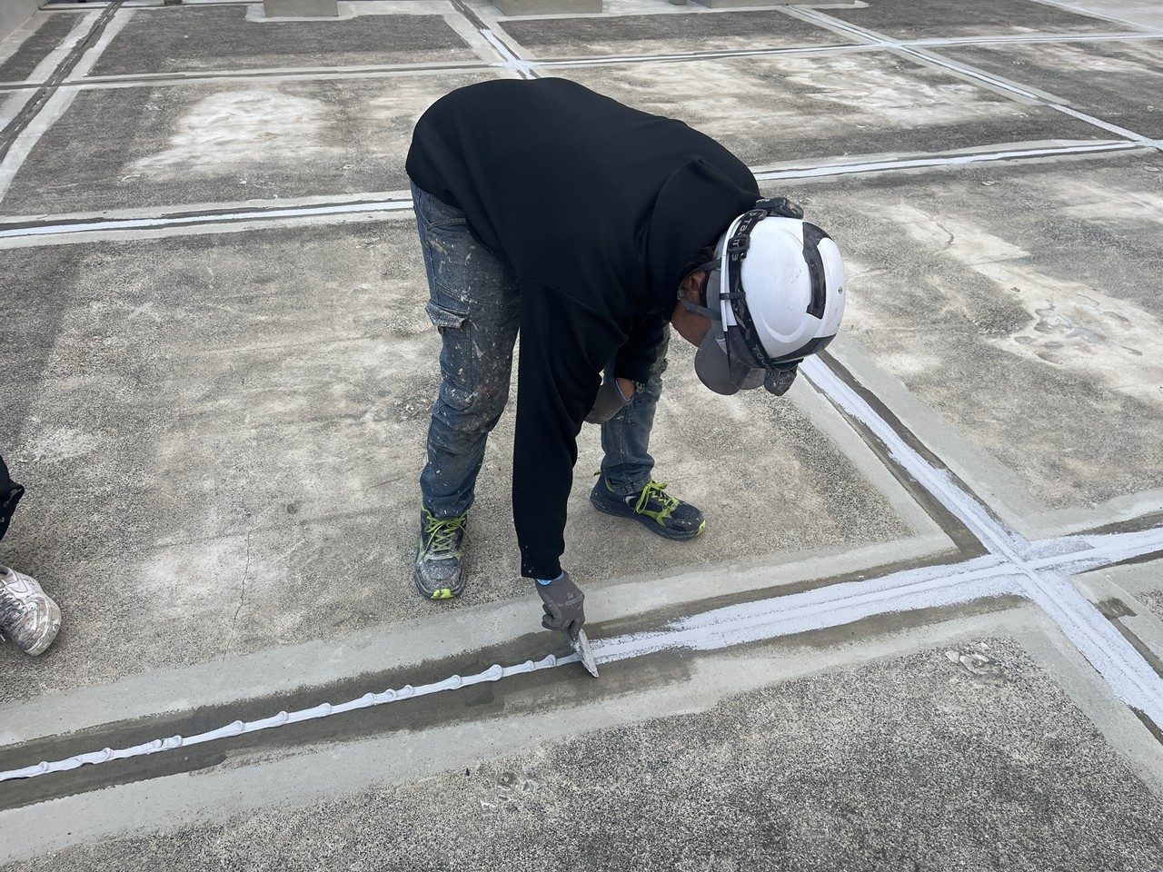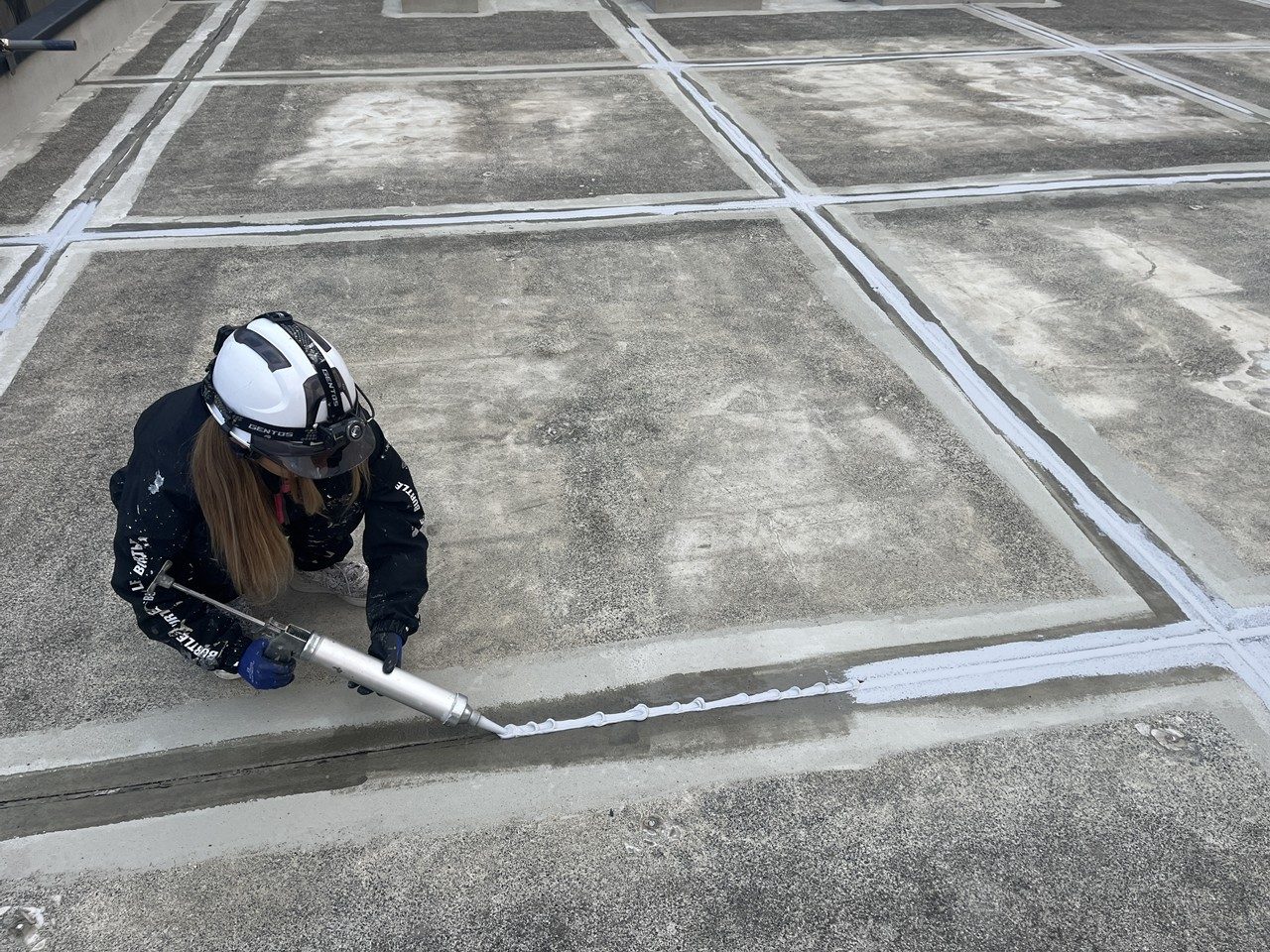 目地材の撤去したあとの溝を埋めます!ワン・ツー・スリー!